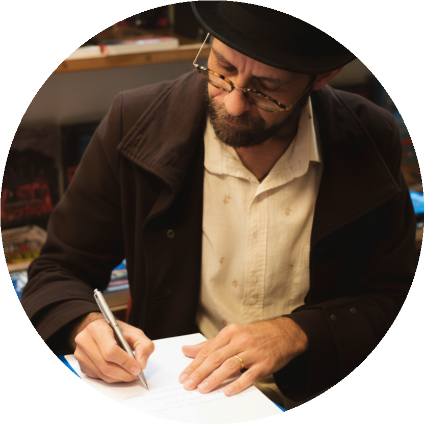 Leandro Bertoldo Silva é o criador deste blog. Formado em Letras, pela Pontifícia Universidade Católica de Minas Gerais – PUC-MG, é membro titular da Academia de Letras de Teófilo Otoni. Escritor independente, Leandro é artesão de palavras e criador de livros feitos à mão. Sua obra transita entre a literatura e a arte manual, explorando uma nova forma de escrever, produzir e compartilhar histórias, onde cada livro é único, feito com tempo, valorizando a experiência e afetividade da leitura.