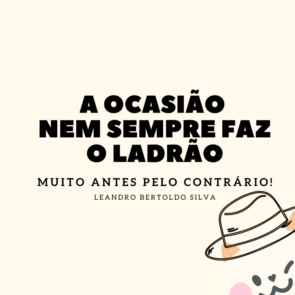 — Sim, Juvenal! O menino tem toda razão, mas tem muito gatuno por aí com instrução, boa pinta, roupas de marca, sapatos novos e tênis da moda, com toda condição de trabalho, fortes e saudáveis, que ao invés de recorrer à honestidade prefere roubar as pessoas. É um absurdo!